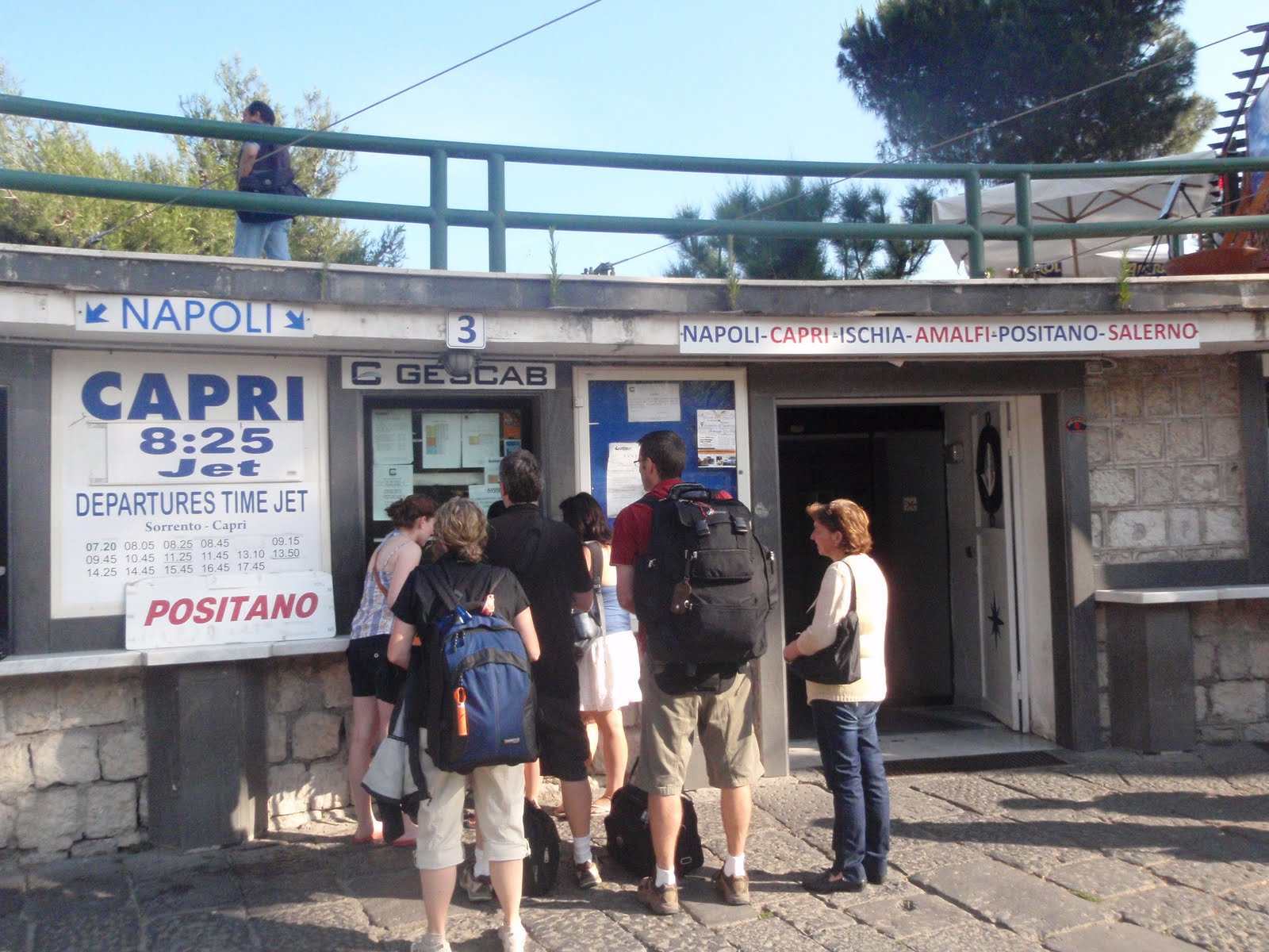前往卡布里島,要先從蘇連多Tassio Piazza旁邊的小路走到岸邊,經過長長的樓梯才會到達海平面的港口。