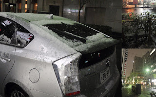 果然出了有樂町站,下起紛紛大雪,場景直逼北海道雪難之旅的模式,只是今年東京都沒下雪,所以兩旁尚無積雪。基本上東京真的不常下雪,位於日本西邊,水氣在東日本都下光了(可見野澤溫泉村和金澤)。但今年水氣旺盛,不只是東日本下了400公分的雪,連東京都下起第一場雪!去東京之前,覺得應該要下個雪,真沒想到讓我盼到了(樂)。