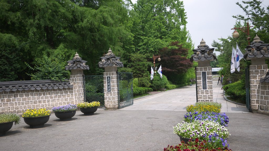 坐車到狎鷗亭(Apgujeong),往第一個景點島山公園走去。出狎鷗亭地鐵站的瞬間,感覺街景十分陌生卻又熟悉,跟世界上任何一個都市都好像,沒有特殊的標誌或公共藝術,實用感很重的城市。江南地區跟江北不同,是後來發展的區域,大部分的路是事先規劃好的方格狀,方格又感覺很大,跟北京街頭有異曲同工之妙,街景跟亞洲各個現代化城市一樣無趣。